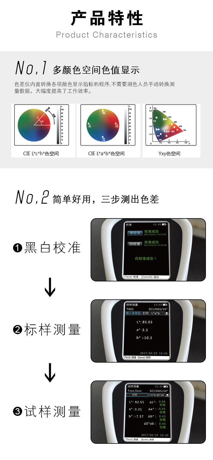 2、L*a*b、L*c*h、Yxy等多顏色空間色值顯示;