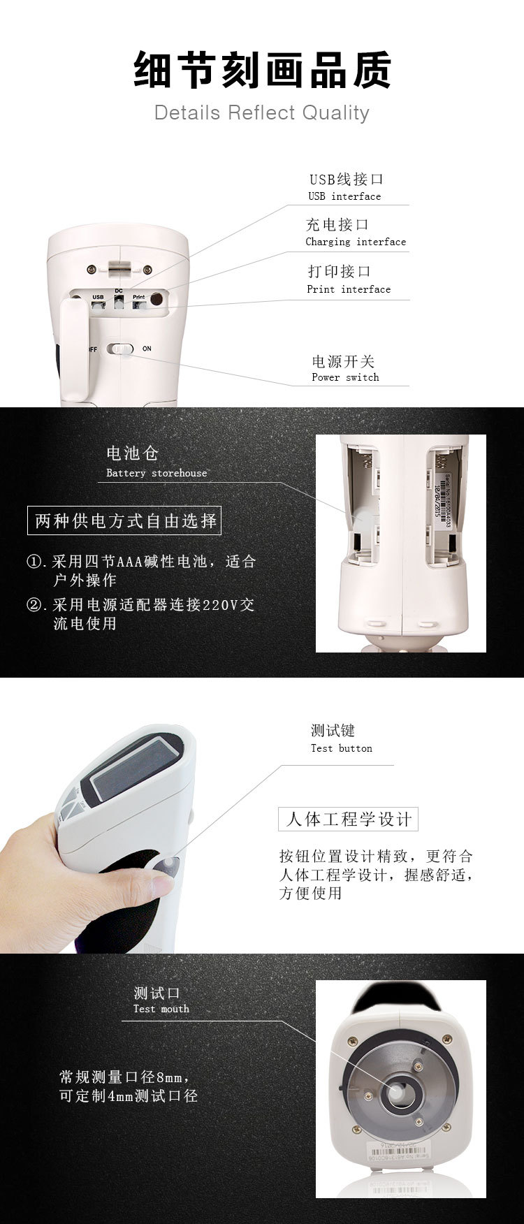儀器腰身符合人體手掌弧度,可進(jìn)行長久檢測工作;高手感皮質(zhì)設(shè)計(jì),增加摩擦,防止手指打滑。