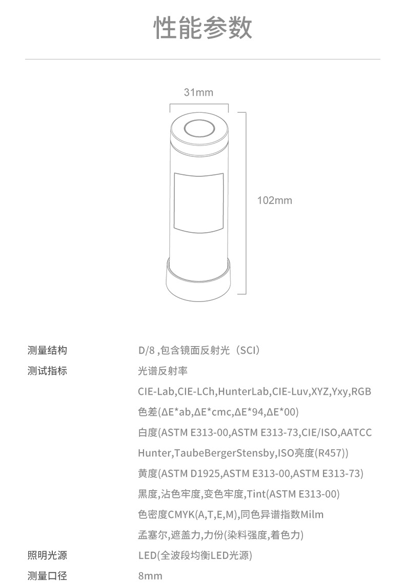 測(cè)量穩(wěn)定性※ | ΔE*00<0.4 | ΔE*00<0.2 | |