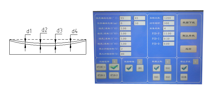 4、碾輪與試模接觸壓強(qiáng): (0.7±0.05)MPa(60℃時(shí)),可調(diào)范圍0.5~1.2(MPa)