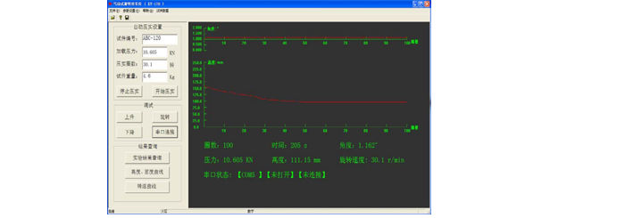 4、可輕松設(shè)定旋轉(zhuǎn)壓實(shí)角度、壓實(shí)壓力、旋轉(zhuǎn)速度、旋轉(zhuǎn)次數(shù)等測試參數(shù),并對壓實(shí)實(shí)驗(yàn)結(jié)果進(jìn)行保存、繪圖、打印等操作。