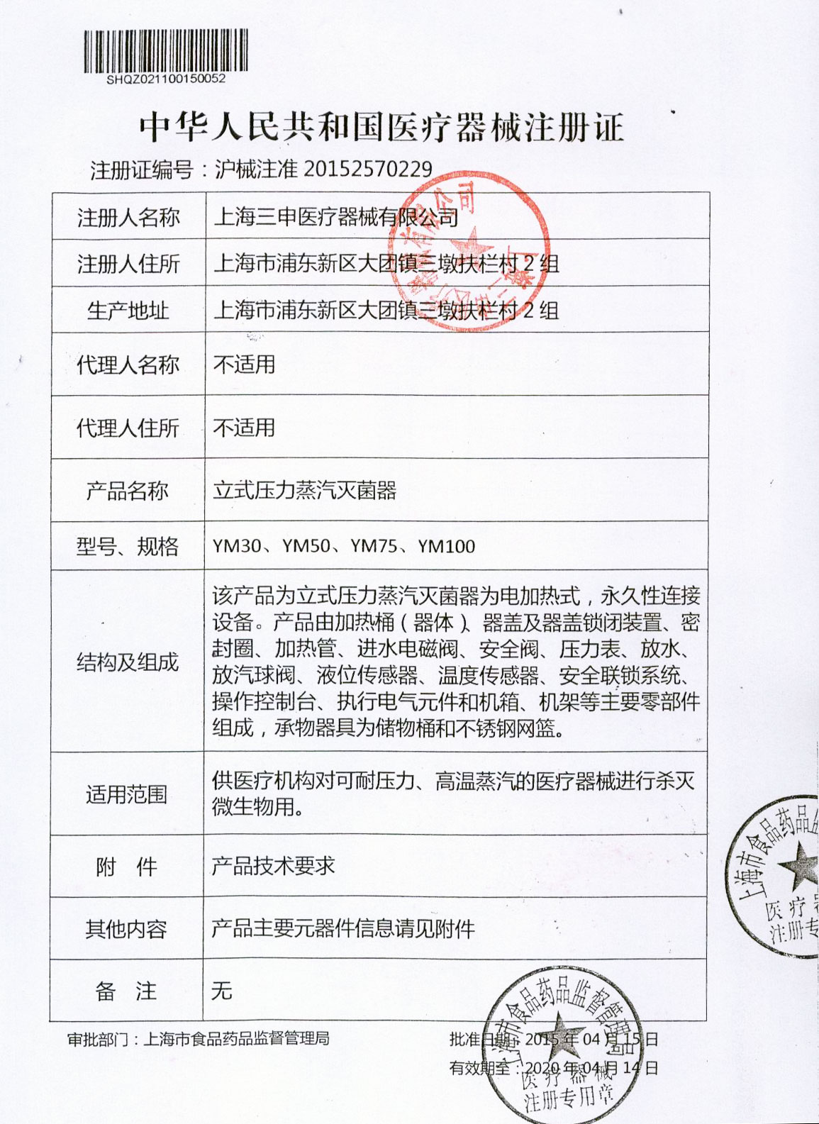 上海三申YM30B/YM50B/YM75B醫(yī)用高壓滅菌鍋消毒鍋立式壓力蒸汽滅菌器(停產(chǎn))